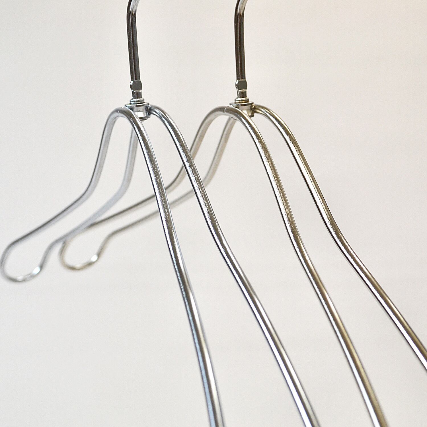 ハンガー本体に梨地加工により凹凸を付けのち、メッキ加工を施すことで光の反射を抑えたマットな質感に仕上げる加工方法となります。