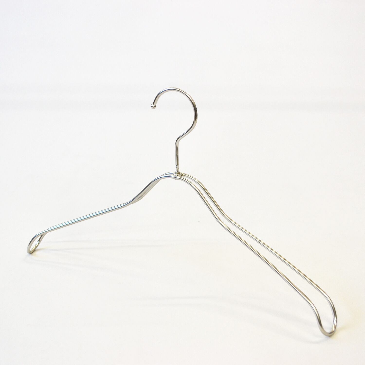 中央から肩先に向けてカーブ(湾曲)し、先端はやわらかく服を立体的に美しく表現します。全体的に丸みを帯びたデザインで、フックは回転式の為、角度を変えてハンガーラックに掛けることも可能です。