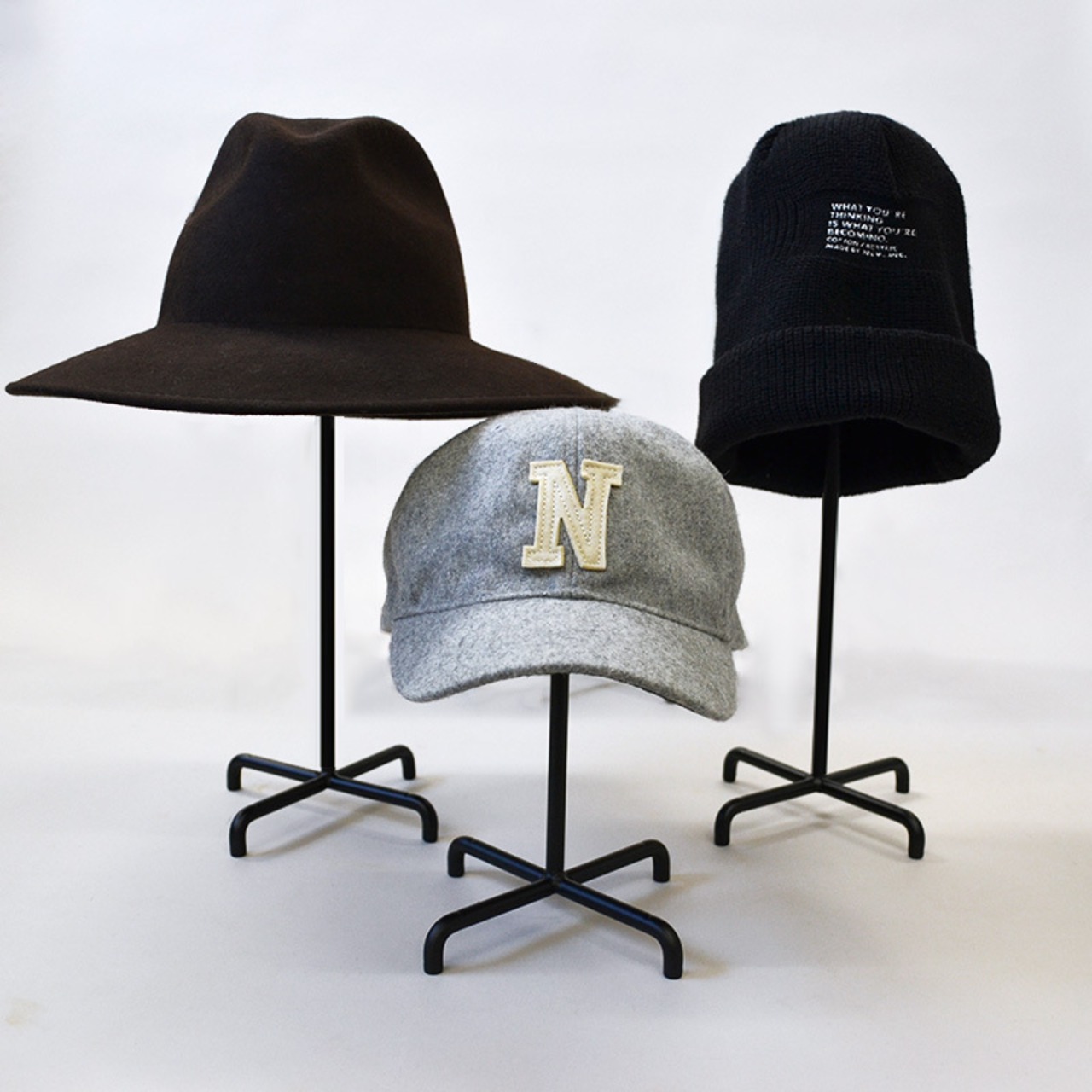 2サイズ展開のアイアン帽子スタンドです。シンプルな形状なので色々なタイプの帽子にも似合います。