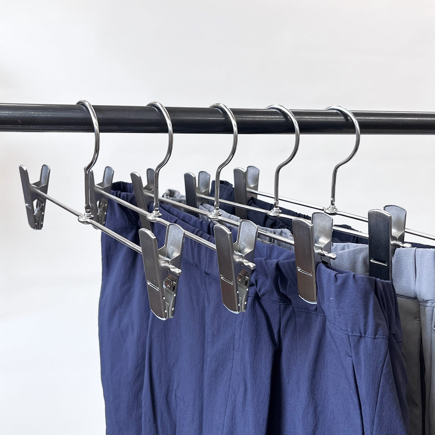 サイズは男性・女性問わず使用できるユニセックスサイズでクリップはグリップ力抜群なのでパンツやスカートがクリップから外れる心配もございません。フックは回転式の為、角度を変えてハンガーパイプやハンガーラックに掛けることも可能です。